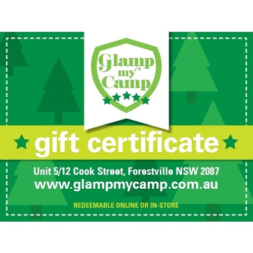 Glamp My Camp $100 Gift Voucher...Spend online anytime!
