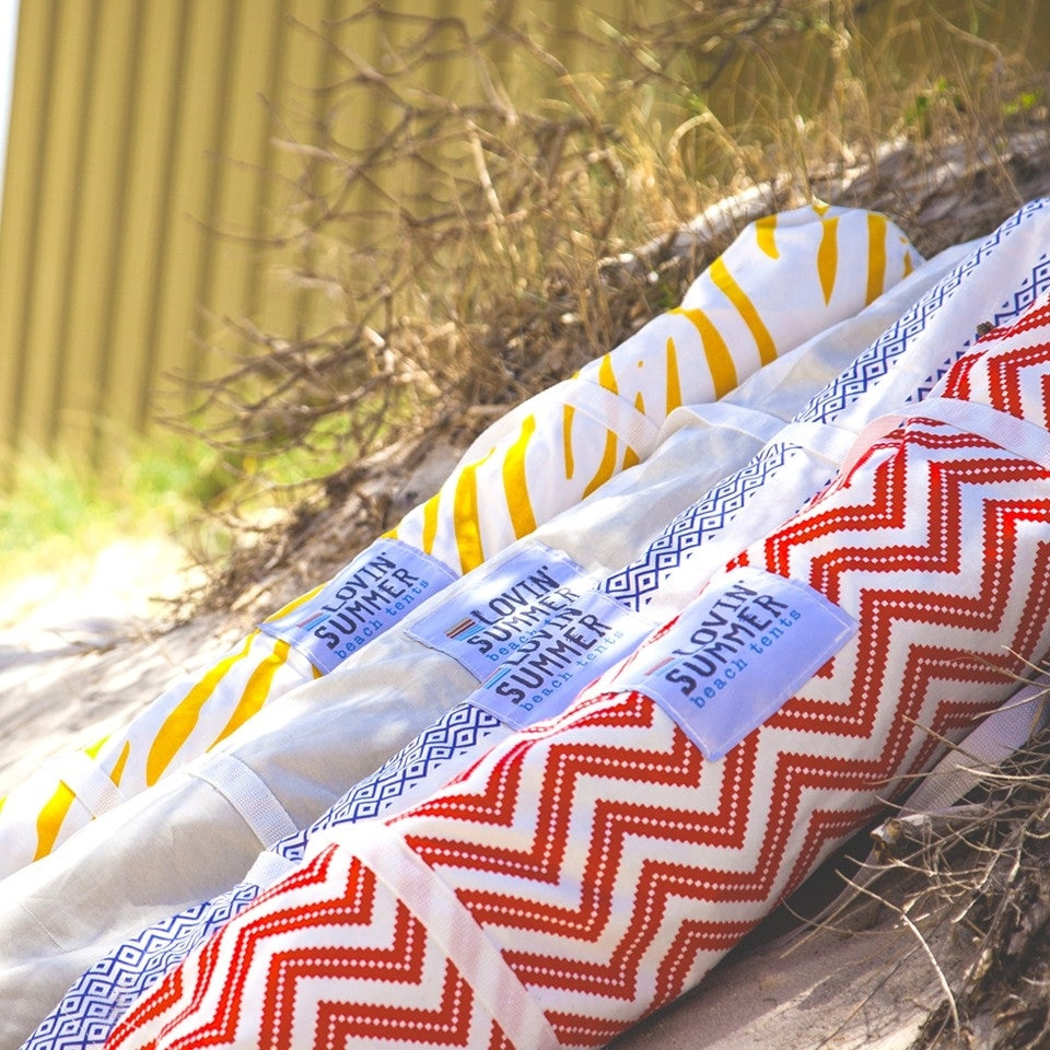 This stylish 100% Cotton Canvas Fabric Beach Shade in Rio Pattern from Lovin Summer has been tested to provide 97.5% UV Protection and UPF 40 Rating. The generous size 3.3m x 1.8m provides shade for the whole family and can be used on sand or grass. It is the perfect alternative to the beach umbrella providing far more shade and is safe and secure on windy days. It allows good vision and the breeze to come through to keep you cool and comfortable on hot days. The beach shade is lightweight, quick and easy to assemble with multiple set-up options to protect you from the sun. Constructed from tough, durable, lightweight cotton canvas and aluminium poles the quality will ensure it lasts many summers. The Beach Shade comes in a matching carry bag and the kit is fully complete and ready to use. It is perfect for the beach, camping, parks, picnics, the backyard and sports grounds.