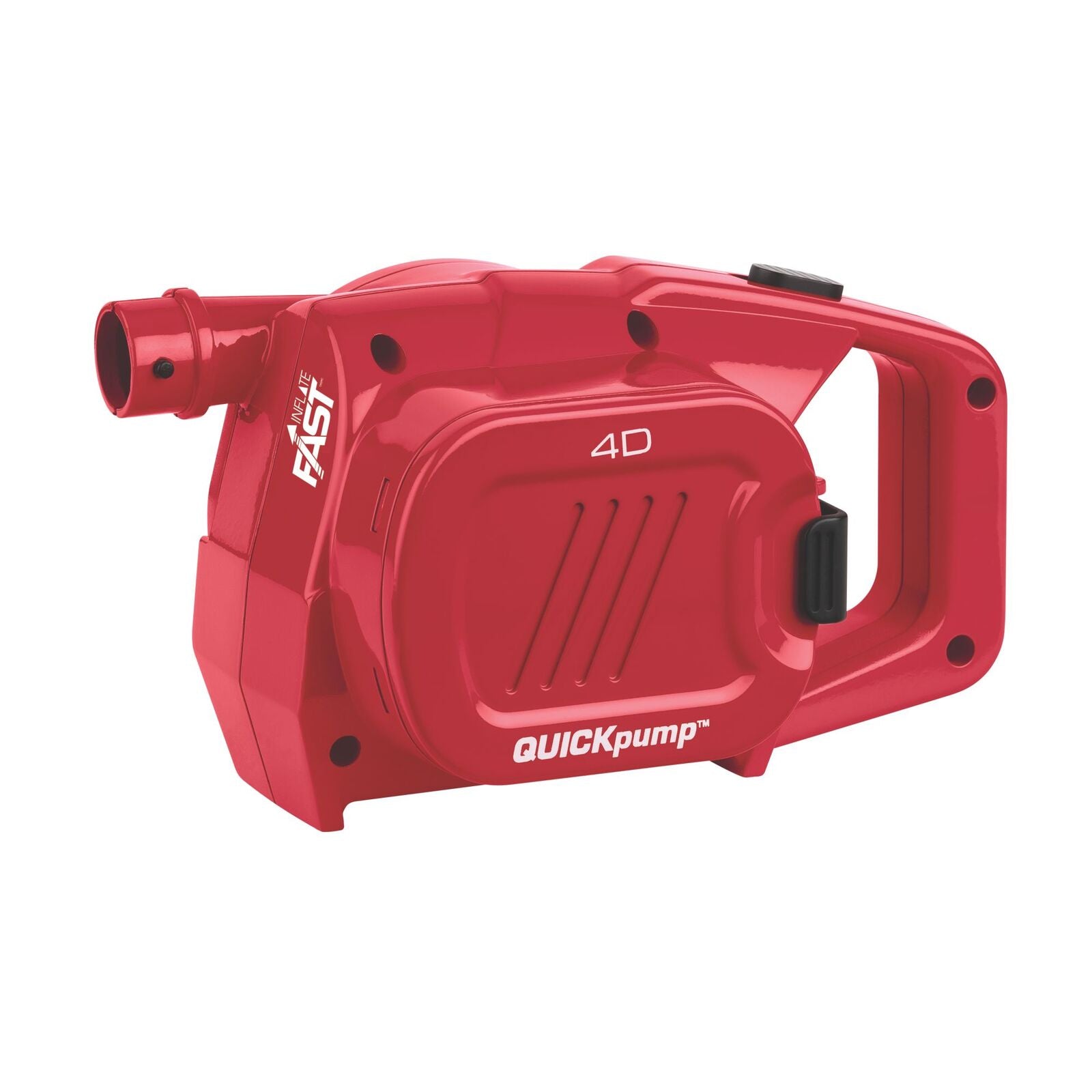Wherever you are, quickly inflate or deflate just about any single high airbed with the Coleman® QuickPump™ 4D Pump. Powered by four D-cell batteries, this portable pump is ready to go anywhere. Just connect it to the Double Lock™ valve, and watch this powerful pump with a Fast Inflate™ and Fast Deflate™ design get your single high airbed ready in no time. Additional adaptors also allow you to use the pump on Boston valves, so you can fill other common inflatables. When the fun is done, the pump also deflates your airbed for quicker storage.