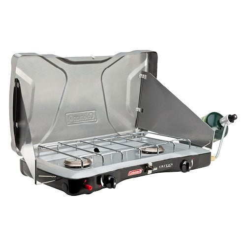 The Coleman Instastart 2 Burner Stove from the Triton Series is ideal and safe for camping trips, picnics and outdoor activities. With features such as independent fully adjustable burners, easy to clean removable grate and aluminised cook-top, stainless steel rust-resistant burners and adjustable wind guards to fit larger pans which means it can fit one 30cm pan and one 25cm pan at the same time.