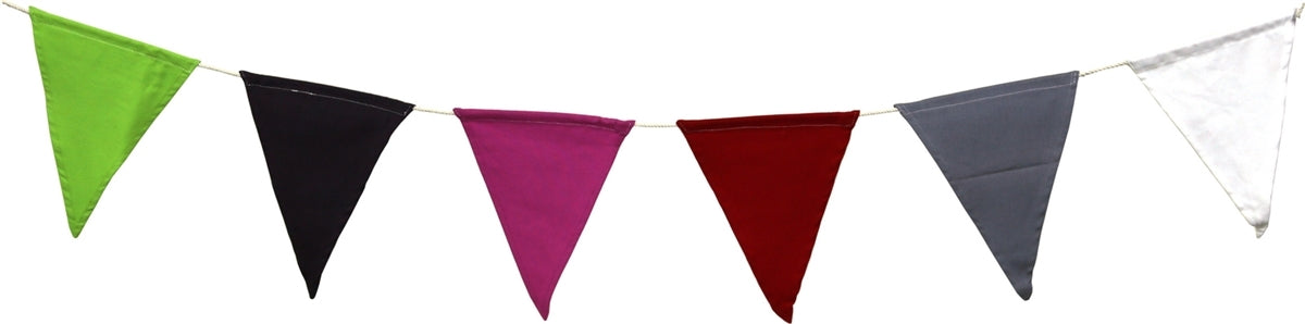 Bunting can also be used for decorating backyard gardens, parties, kids rooms and special events. This bunting features solid colours cotton fabric flags, colours may vary.