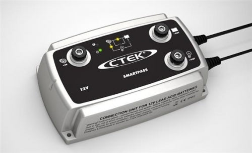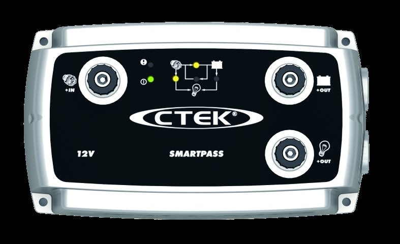 SmartPass is an energy management unit designed to work with the CTEK D250S Dual which controls and optimises energy produced by alternators, solar cells, wind power or conventional AC/DC chargers, and distributes it to the battery banks or consumers which require energy, such as the deep cycle bank, bow thruster batteries, consumers, etc.