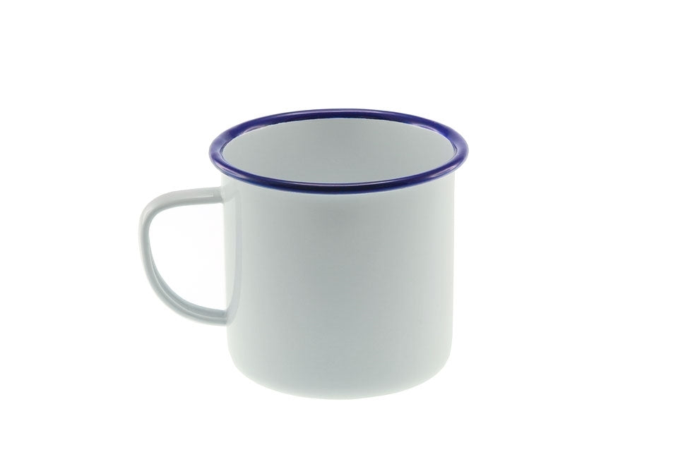 Falcon Enamel Mug 500ML - White with Blue Rim
