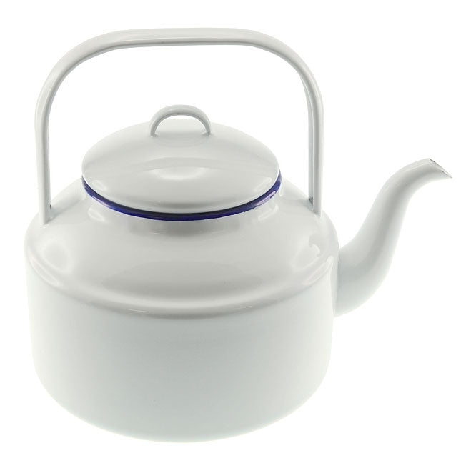 Falcon Enamel Tea Kettle 2L - White with Blue Rim
