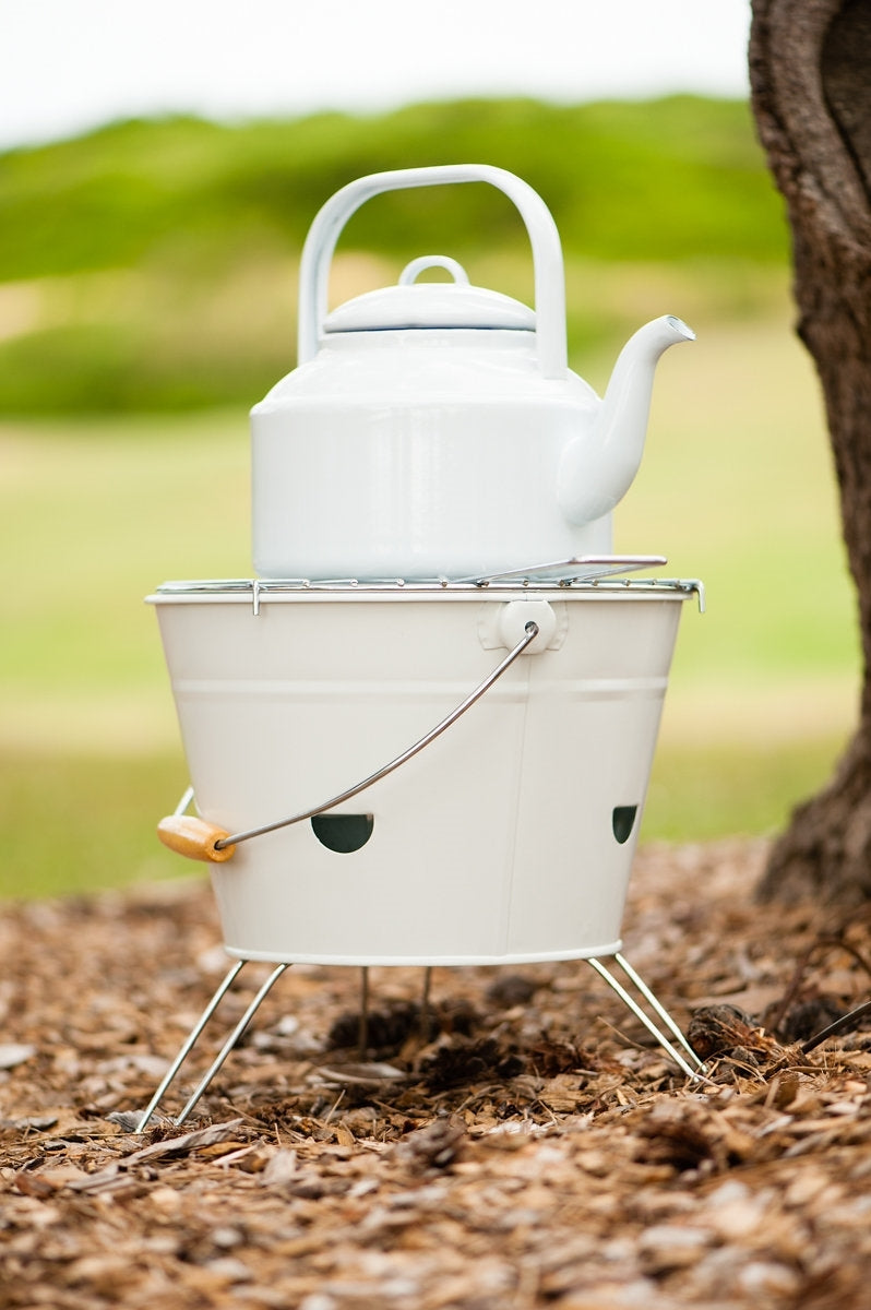 This is the perfect kettle for large groups of campers, big families, or for when you need lots of boiled water! This lovely, classic Enamel Tea Kettle from Falcon Enamelware in iconic white with blue rim, has a 2 Litre capacity to make your camp tea. Made from enamel fused with high-quality steel, the kettle can be used on gas, electric and cast iron cooktops. Scratch-resistant, durable, oven safe to 270C and dishwasher safe, it is made to last many years.