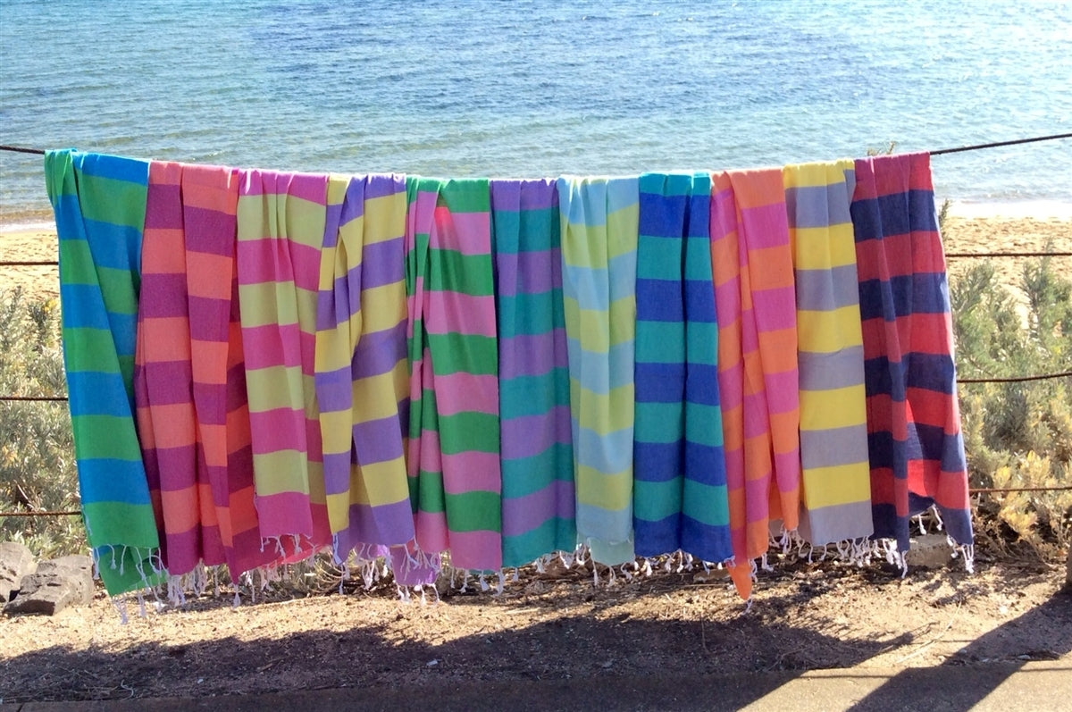 The Superbrights Turkish Towels from Knotty are super absorbent, quick-drying, lightweight and compact. These versatile towels look great and are a practical camping and caravanning accessory. The ultimate beach towel, it can double as a sarong and fits easily into your beach bag. Use them for the shower, beach, pool, picnics, sports and more. Designed in Australia, the towels are handmade in Turkey from 100% Turkish cotton which becomes softer and more absorbent every time you use them. The towels are generously sized 180cm (L) x 100cm (W) and feature little knots at the ends.