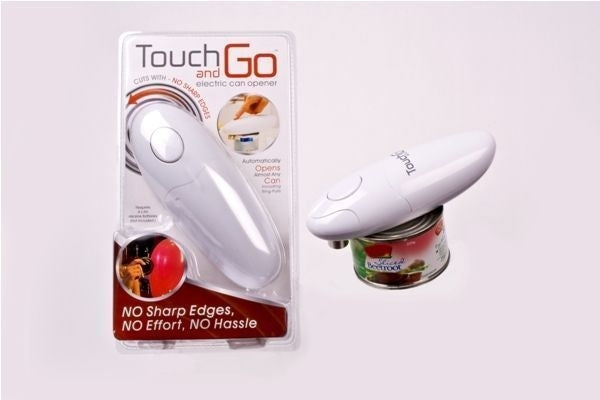The Touch and Go Can Opener is battery operated and opens almost any can including ring pulls. It is very easy and safe to use - simply position on the can and push the button - it automatically opens the can leaving no jagged sharp edges on the can or lid. A magnet on the can opener attracts the lid so it can be lifted from the can once open, minimisng any mess.