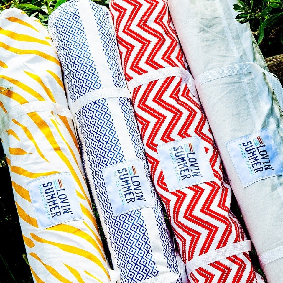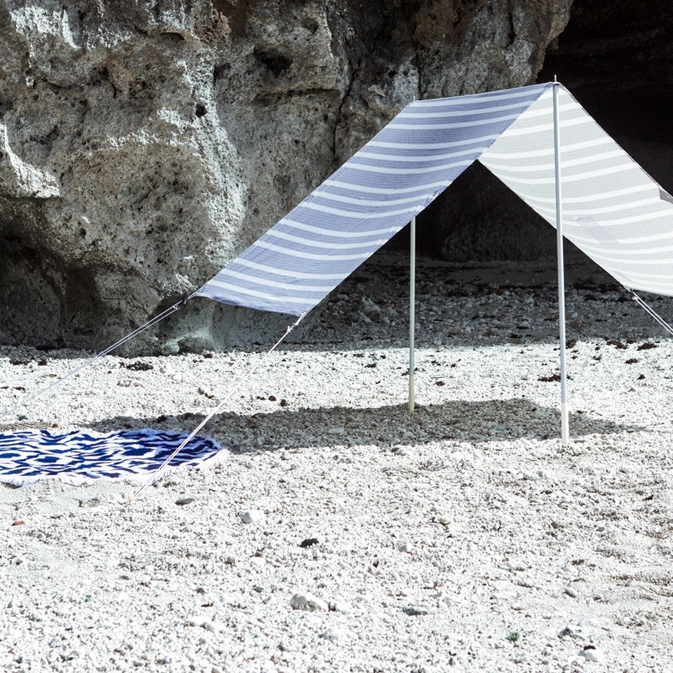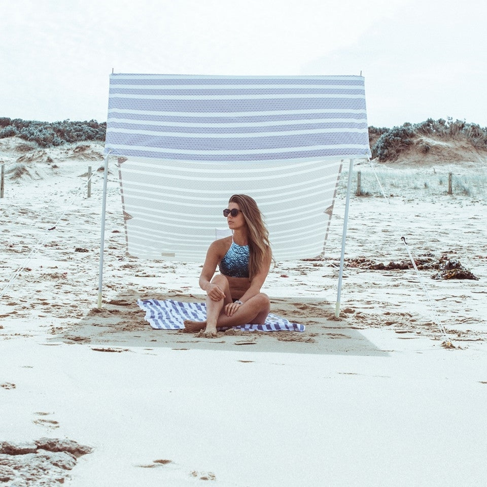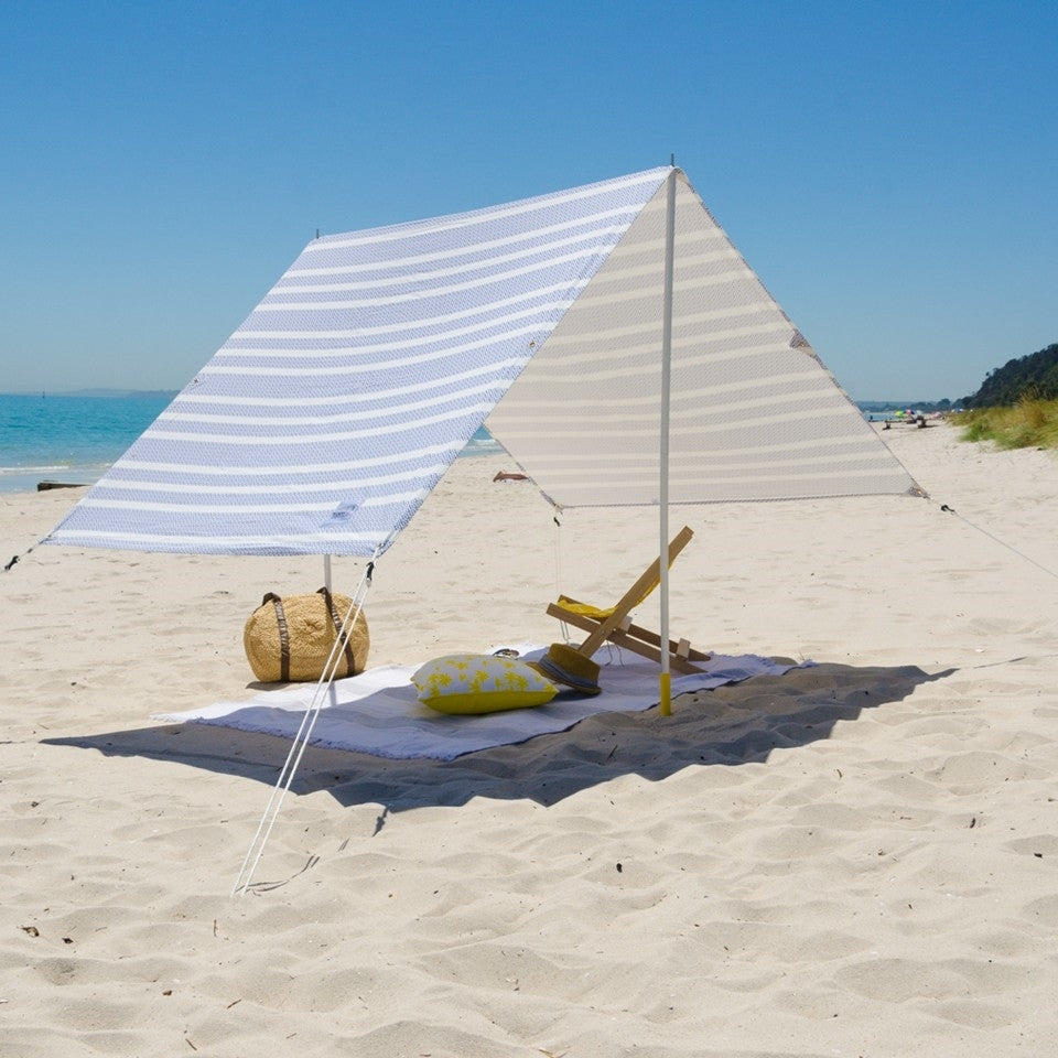 This stylish 100% Cotton Canvas Fabric Beach Shade in Rio Pattern from Lovin Summer has been tested to provide 97.5% UV Protection and UPF 40 Rating. The generous size 3.3m x 1.8m provides shade for the whole family and can be used on sand or grass. It is the perfect alternative to the beach umbrella providing far more shade and is safe and secure on windy days. It allows good vision and the breeze to come through to keep you cool and comfortable on hot days. The beach shade is lightweight, quick and easy to assemble with multiple set-up options to protect you from the sun. Constructed from tough, durable, lightweight cotton canvas and aluminium poles the quality will ensure it lasts many summers. The Beach Shade comes in a matching carry bag and the kit is fully complete and ready to use. It is perfect for the beach, camping, parks, picnics, the backyard and sports grounds.