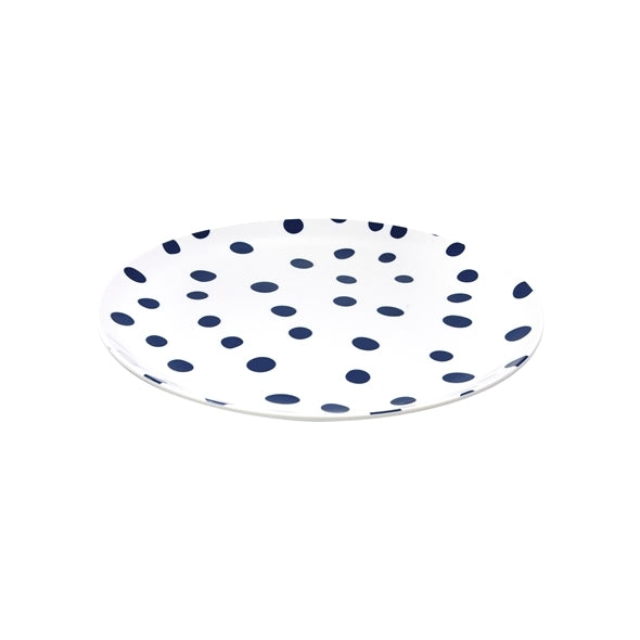 This Gelato Pop Melamine Plate can be used for hot and cold foods. Diameter: 25cm, Colour: White with Navy Spots.