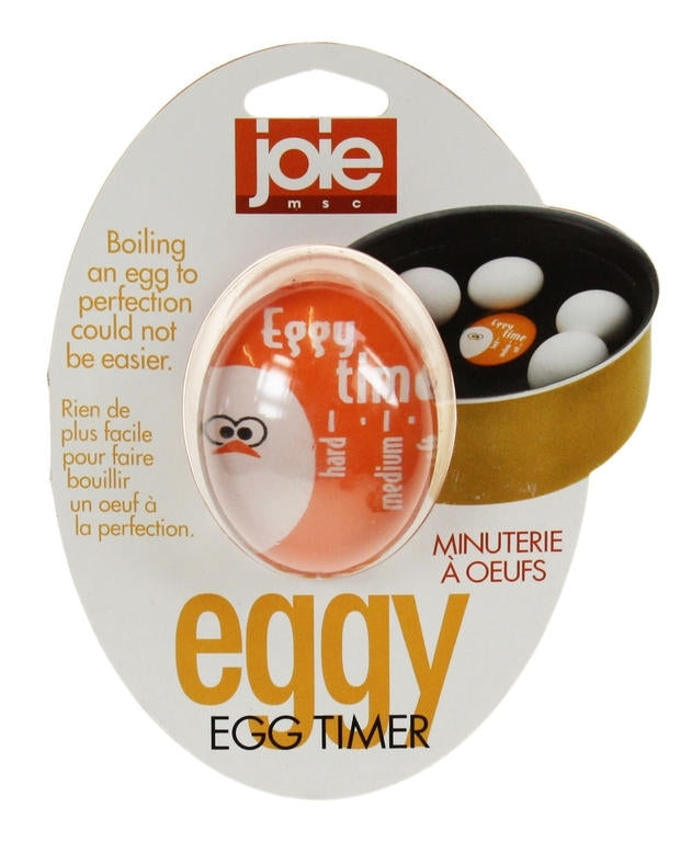 The Eggy Timer from Joie is a great little gadget for egg lovers. With this egg timer boiling an egg to your tastes could not be easier. To use place the Eggy Timer in the boiling water with your eggs and the colour will change from orange to yellow to indicate when the eggs are Soft, Medium or Hard boiled. Simple instructions are included. Made from BPA Free materials.