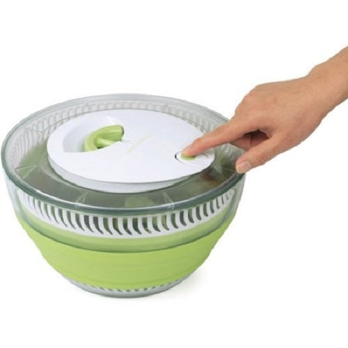This is the perfect salad spinner for camping and at home with it's space saving collapsible design. The salad spinner features an easy pull cord, fast spinning, and anti-slip base for efficient salad drying. The basket can be used on it's own as a colander and the outer bowl can be used as a salad bowl for serving. Best of all, it collapses to half its size for compact storage and expands to full size for use. Excellent quality and BPA Free.