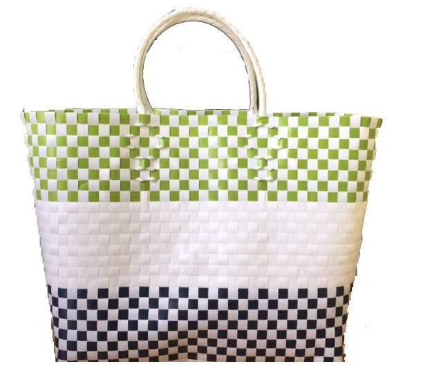 The Woven Beach Tote is an all year round essential. Ideal for a trip to the beach, park, a weekend away and even a spot of shopping. Made with vibrantly hued interwoven recycled plastic tape, with plastic covered handles for comfort.
